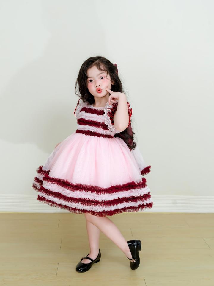 High-End Elegant Pink Princess Dress for Girls Kids' Layered Skirt with Round Flared Layers ODM Supply Plain Dyed Technics