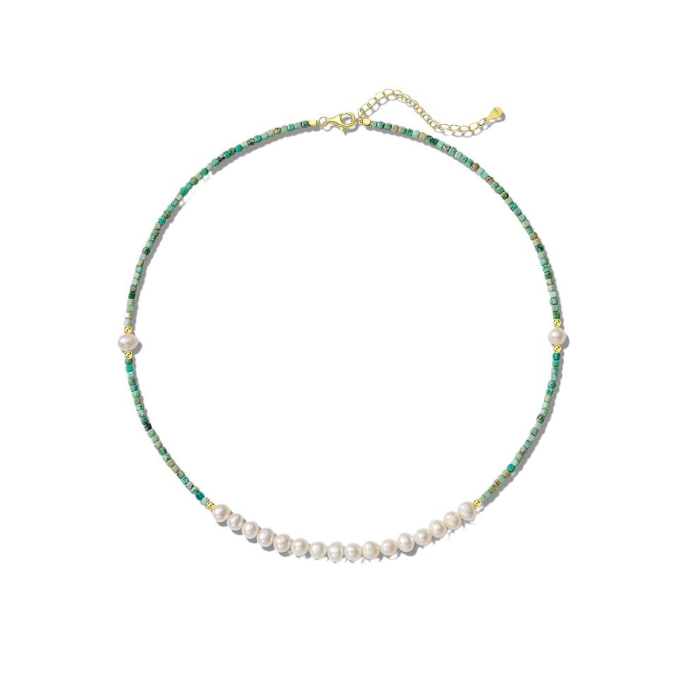 High-End Fashion Beaded Necklace with Natural Freshwater Pearl Patchwork Turquoise Niche Feel Collarbone Chain Wholesale