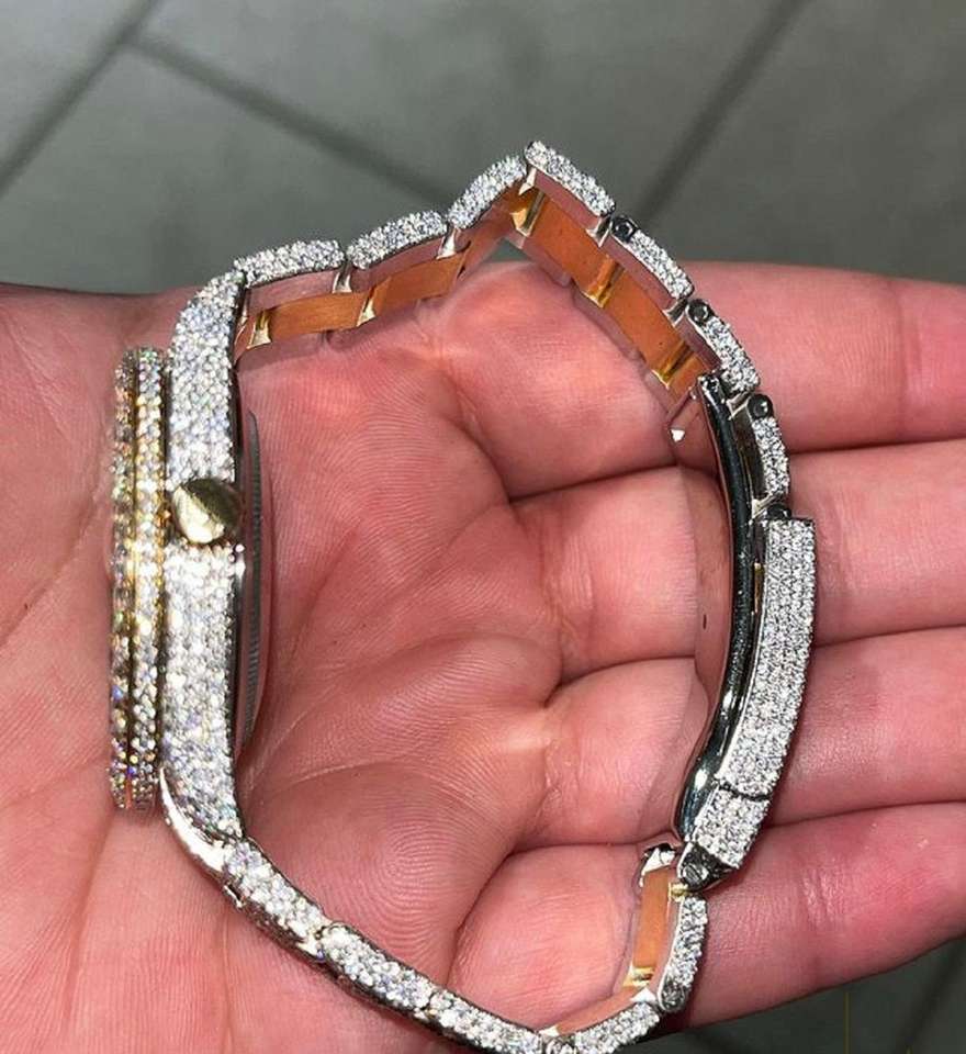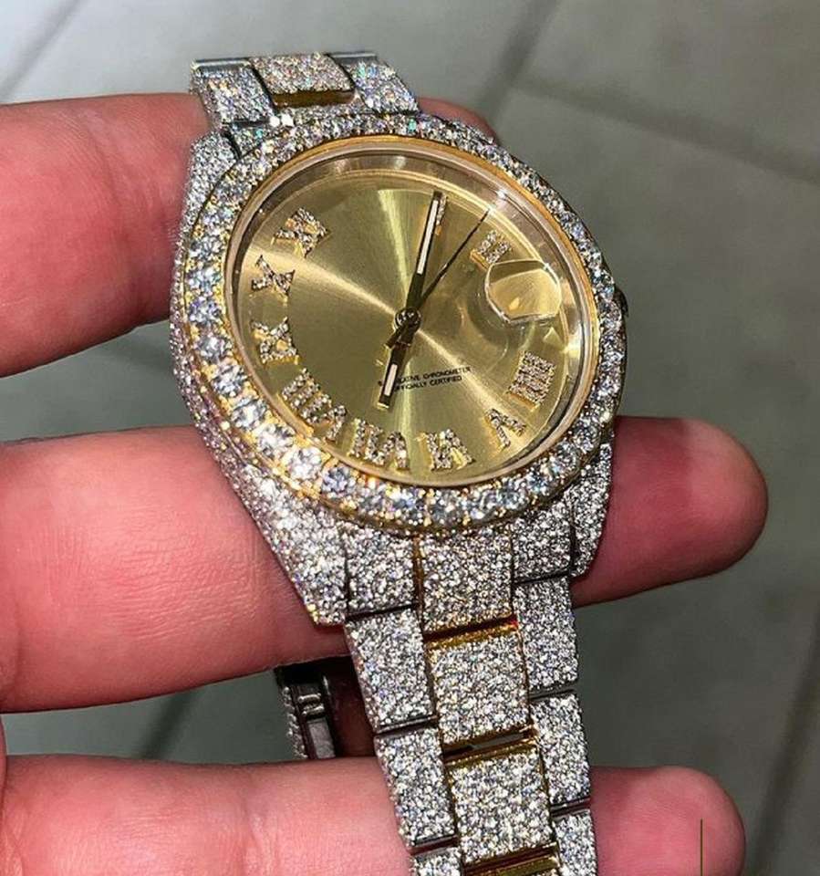 High-End Gold Tone Steel Moissanite Diamond Watch Automatic Movement Roman Numeral Dial Analog Display Glass Limited Edition