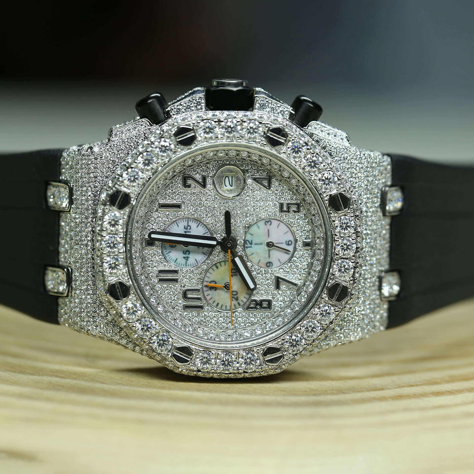 High End Hiphop Waterproof Diamond Moissanite Men's Stainless Steel Leather Analog Glass Watches Limited Edition