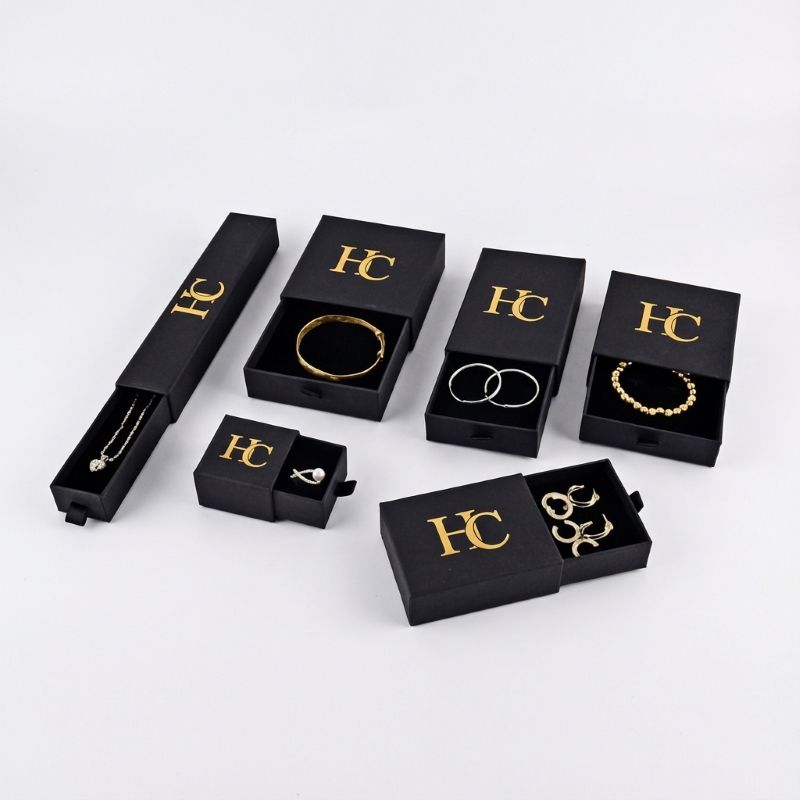 High End Jewelry Set Custom Sliding Drawer Jewelry Storage Box Velvet Pad Spot UV Custom Logo Gloss Lamination OEM Accepted