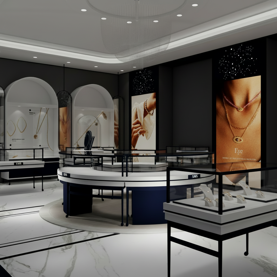 High End Jewelry Store Design Glass Display Cabinet Light up Display Stand Shop Counter Jewelry Display Rack