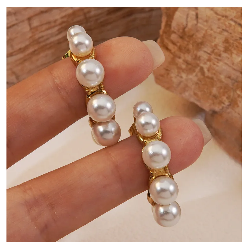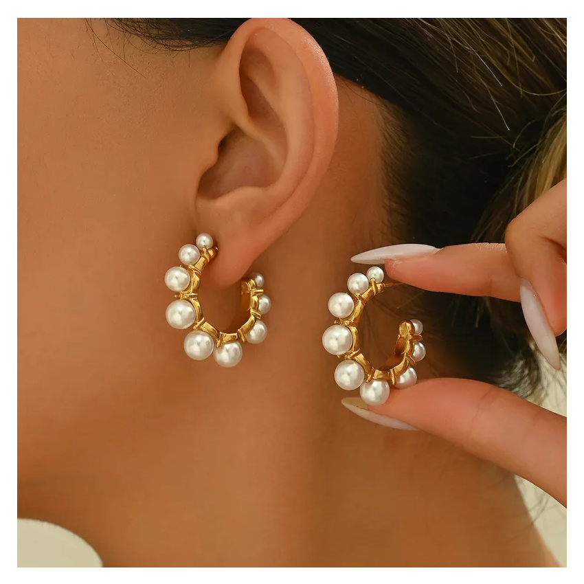 High End Jewelry Stud Earring Stainless Steel 18k Gold Plated Hollow Irregular Pearl Hoop Earrings Direct from India