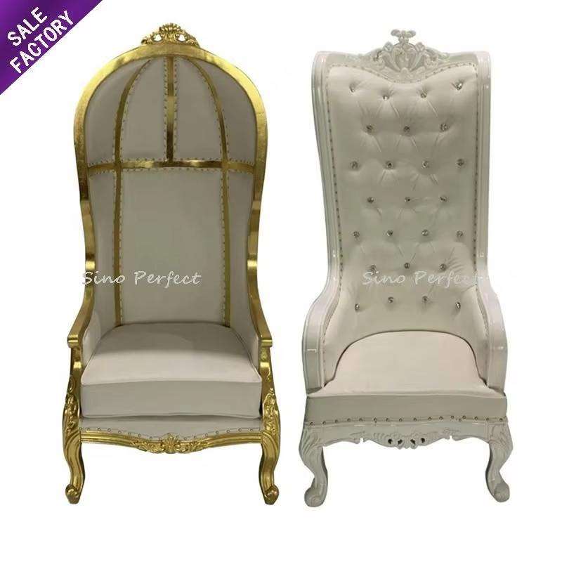 High End King and Queen High Back Cheaper White Gold Throne Chairs Royal Luxury Oarty Wedding Chair for Groom and Bride