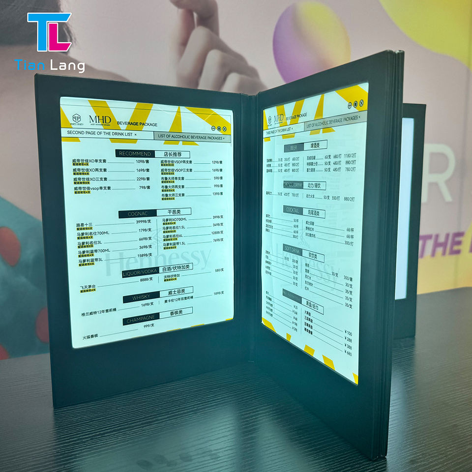 High-End LED Electronic A4 Menu Book Rechargeable for Nightclub KTV Restaurant and Bar Beverage for Bar Counters