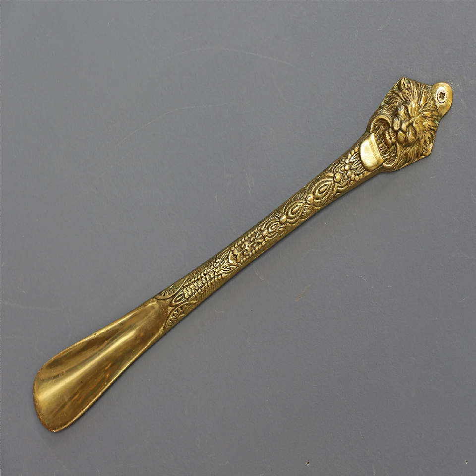 High End Long Carved Gold Brass and Natural Horn Long Shoe Horn Brass Shoe Horn Luxury Style Animal Head and in Fine and Quality