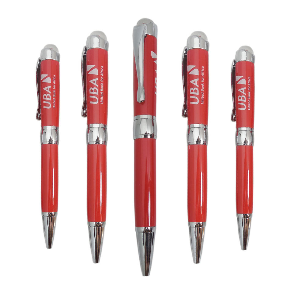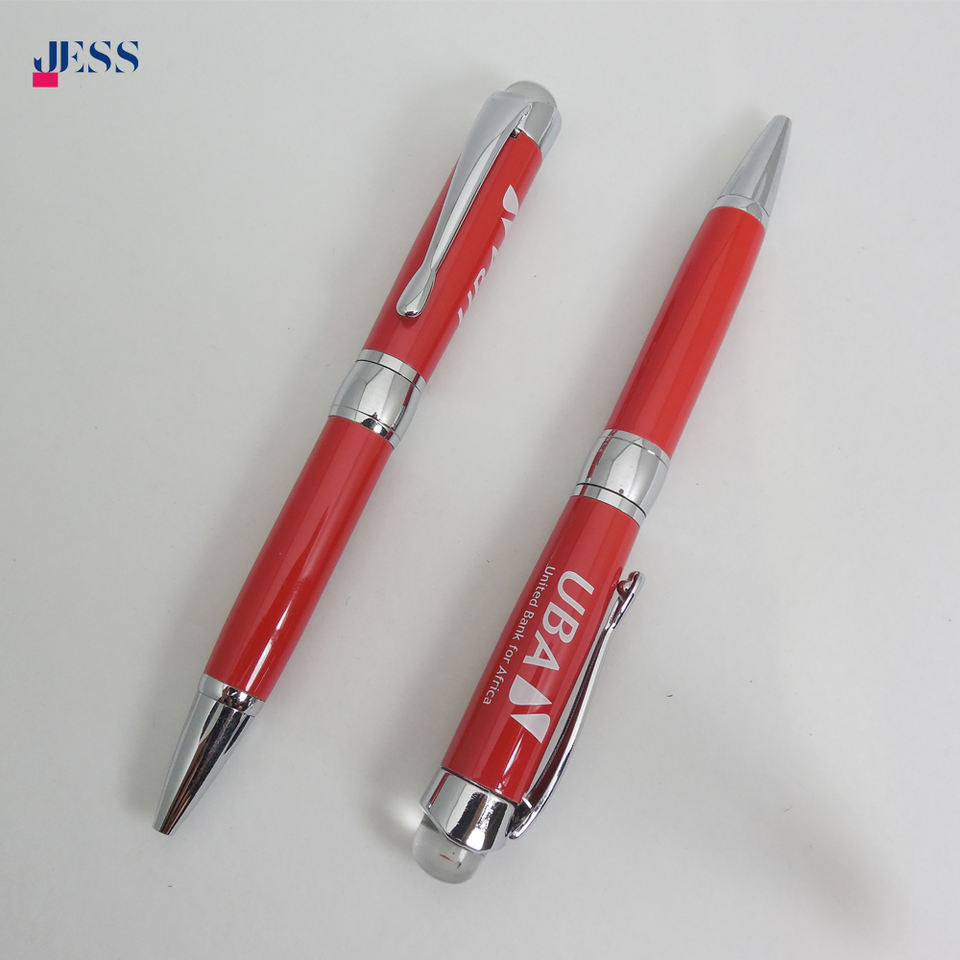 Luxury Heavy Red Metal Bank Pen with Crystal Head Personalized Logo