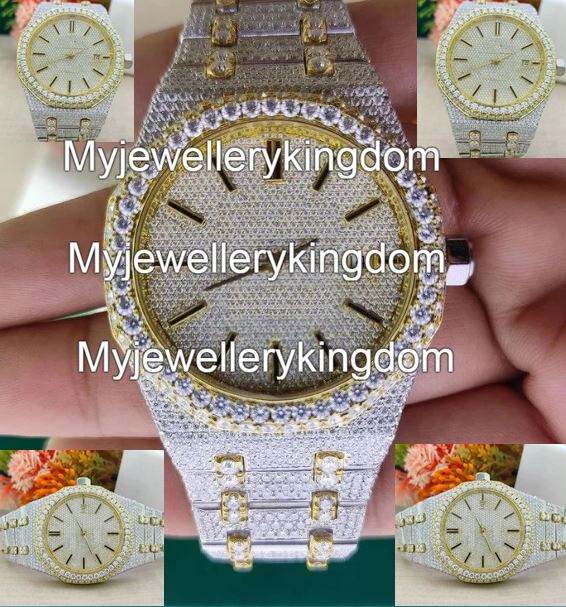 High-End Luxury White Gold VVS Moissanite Tonneau Mens Watch Sapphire Crystal Stainless Iced Wrist Mechanical Watch