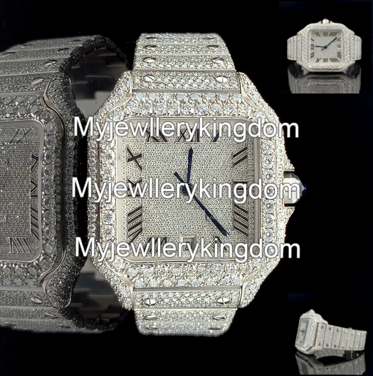 High-End Luxury White Gold VVS Moissanite Square Glass Mens Watch Sapphire Crystal Stainless Iced Wrist Mechanical Watch