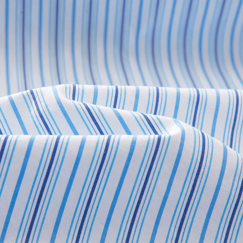 High-End Men's 100% Cotton Long-Sleeved Yarn Dyed Striped Dress Shirt with Embroidery on Pocket Formal Style for Spring Autumn