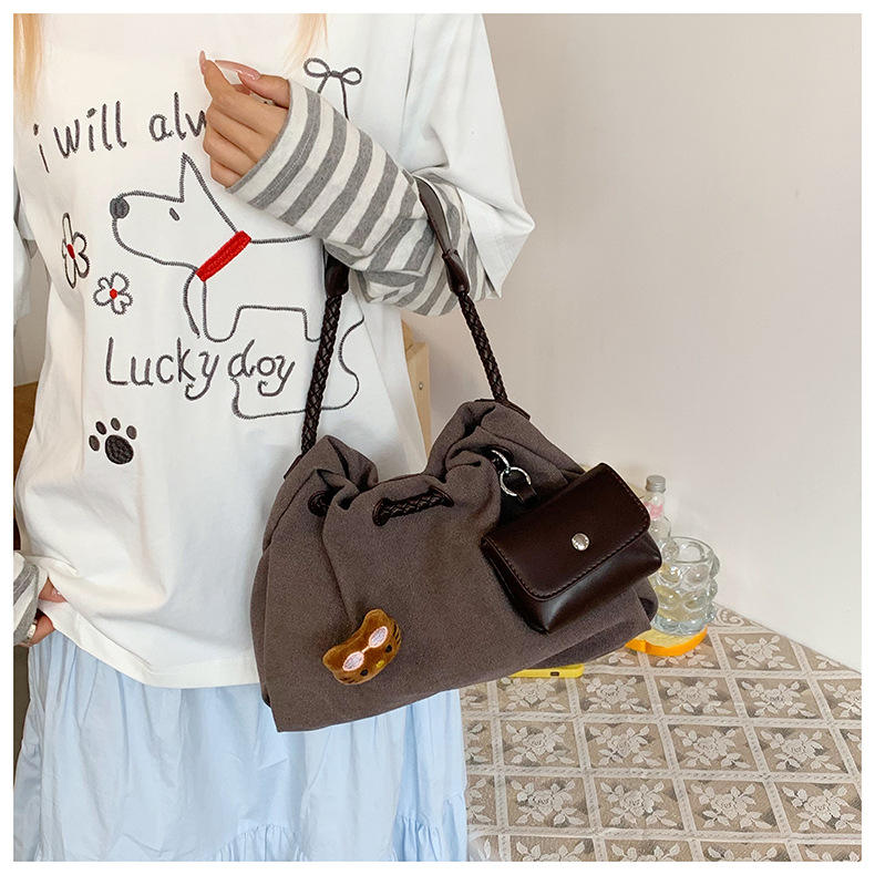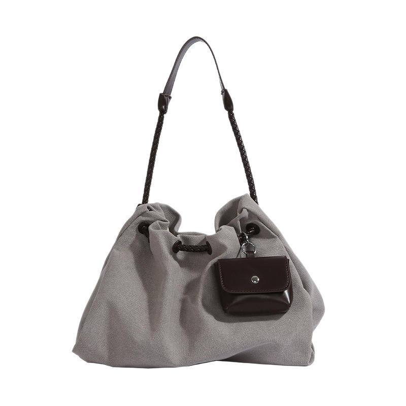High-End Minimalist Denim Tote Bag Genuine Leather Large Capacity Versatile Vintage Single Handle Shoulder Bag for Commuting