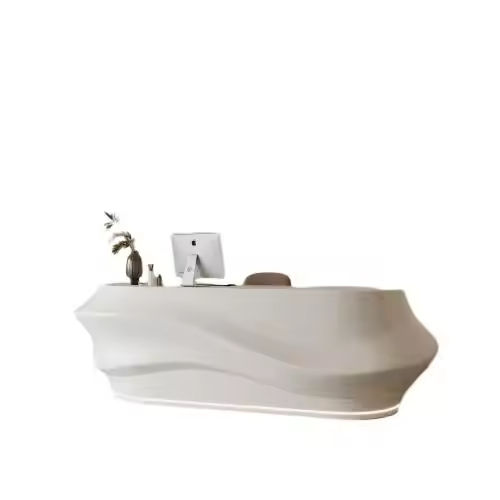 High End Modern Minimalist Extendable White Curved Reception Desk with LED Lighting for Office Hotel & Mall Use