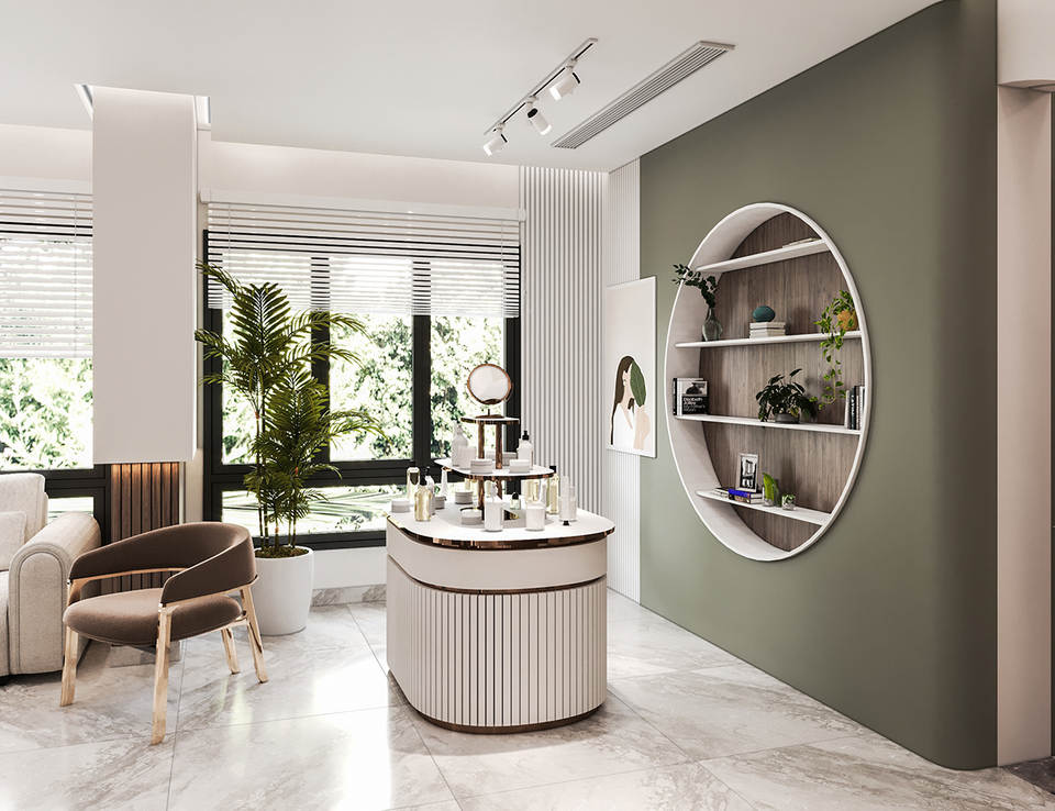High-End Nail Studio Factory's Art Deco Revival Curved Spatial Design Luxury Spaces with LED Lighting