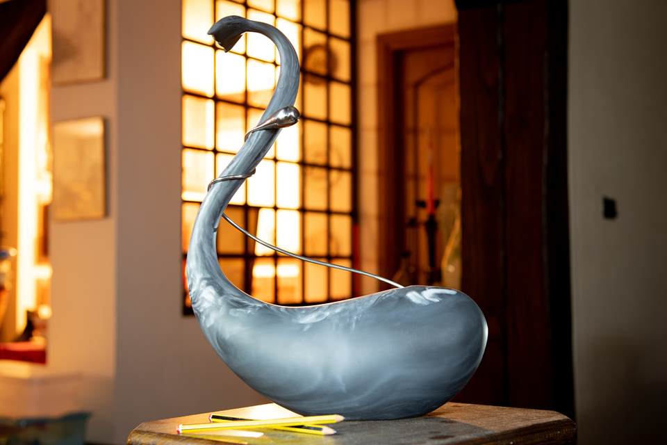 High End Nature Theme Scenic Pattern Irregular Dark Gray Fiberglass Satin Whale Decorative Objects Art Decor