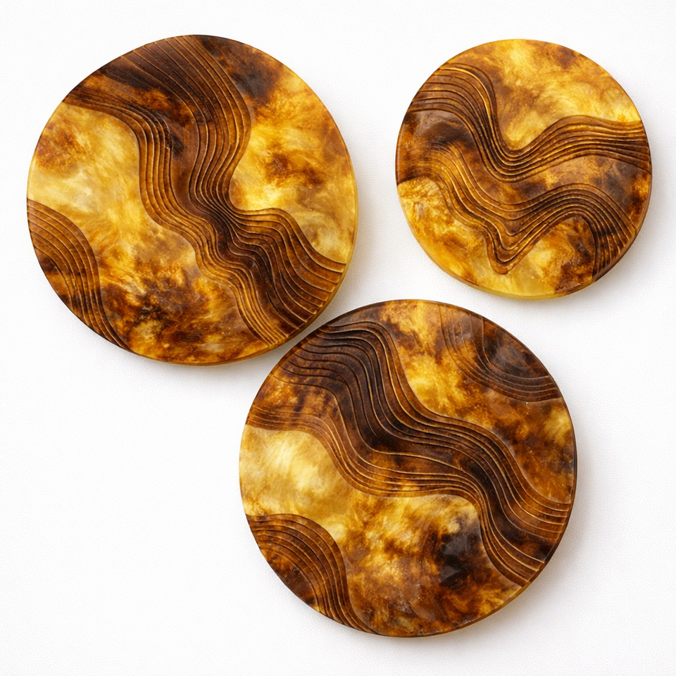 High-End Orange and Beige Resin Wall Art with Wavy Lines Elegant Decorative Resin Art for Sophisticated Home and Office Spaces