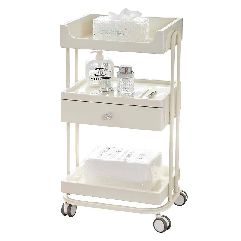 High-End Original Light Luxury Trolley for Beauty Salon Skin Management Car with Wooden Storage Shelf Metal Plastic Tool Car
