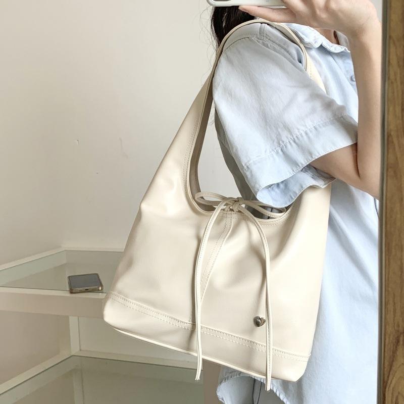 High-End PU Women's Tote Bag New Korean Vintage Style French Bow Niche Large Capacity Single Shoulder Underarm Zippered