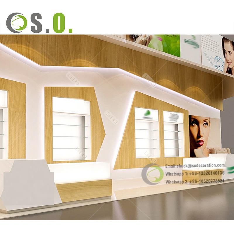 High End Pharmacy Furniture Shelving Wooden Display Pharmacy Rack Shelves With Pharmacy Drawer System