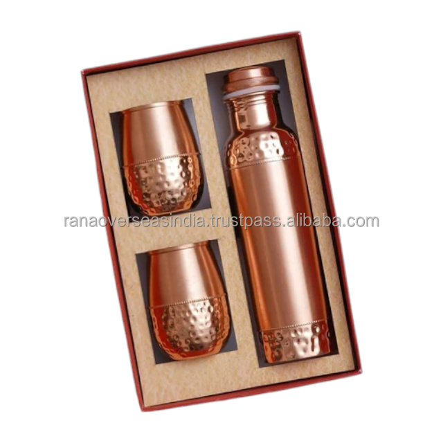 High End Pure Copper Water Bottle & 2 Glass Gift Set Superior Quality Multiple Color Options Perfect for Holiday Gifting