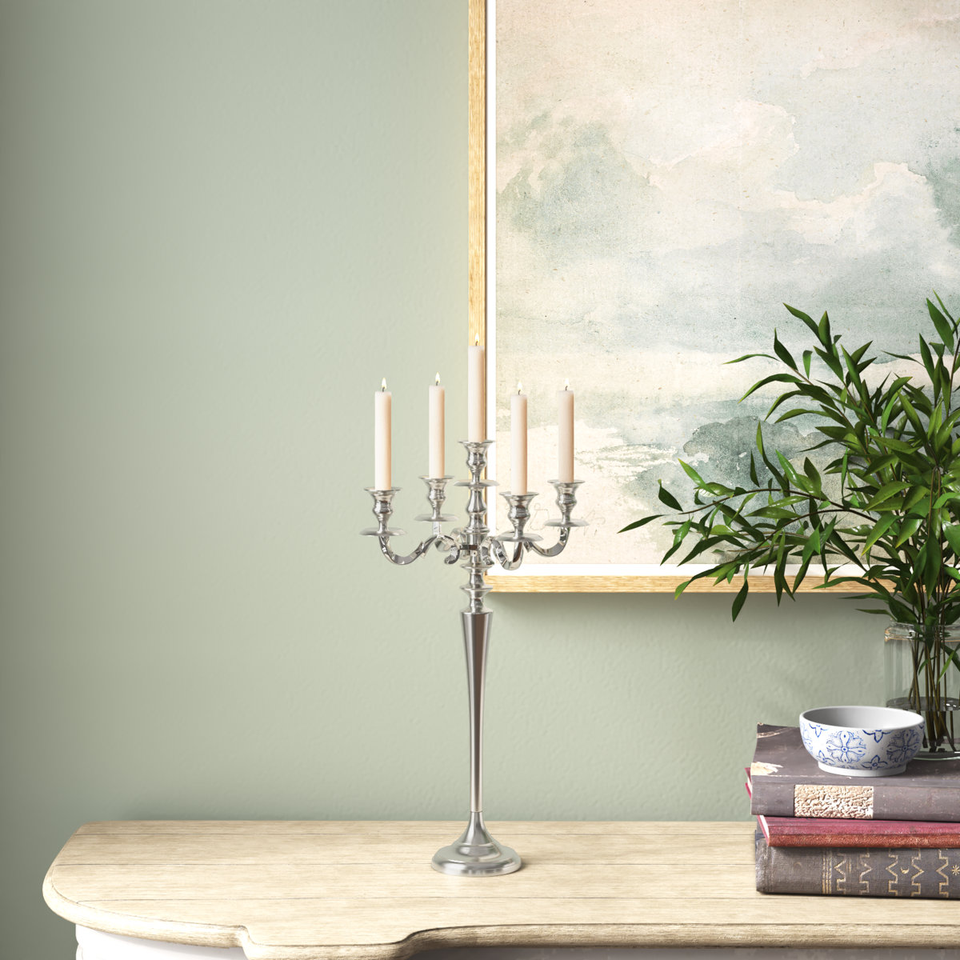 High End Quality Aluminum Silver Candle Holder With Five Arm for Event Party Wedding and Christmas Decoration