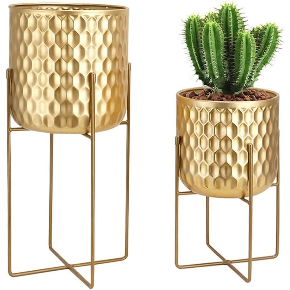 High-End Quality Modern Design Hammered Flower Planter Pot Stand Gold Brass Plating Finish for Garden Outdoor Use New Condition