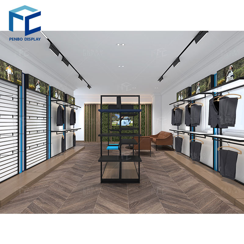 High End Retail Menswear Shop Interior Design Modern Boutique Shelf Clothing Wall Racks Store of Furniture and Clothing