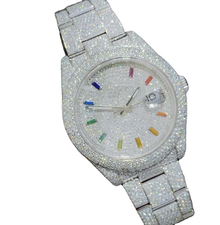 High End Rich Design Luxury Gold VVS Moissanite Classic Fashion Simple Stainless Steel Mens Quartz Watch Waterproof Diamond Iced
