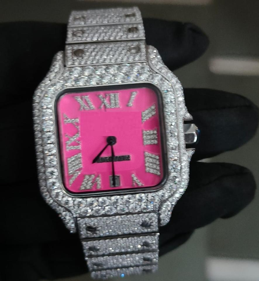 High End Round Luxury Business Sapphire Glass Watches Gold VVS Moissanite Waterproof Mens Diamond Iced Pink Face