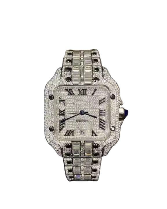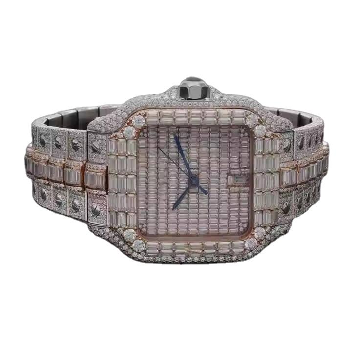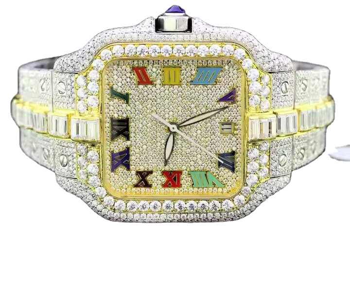 High End Round Luxury Gold VVS Moissanite Unisex Waterproof Classic Fashion Rainbow Baguette Diamond Iced Wrist Quartz Watch