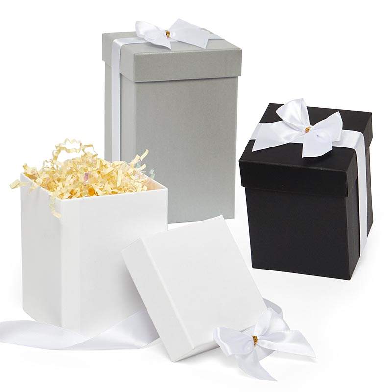 High-End Square Gift Boxes Solid Colored Rigid Paperboard with Lid & Bow Glossy UV Lamination Embossing Recycled Materials