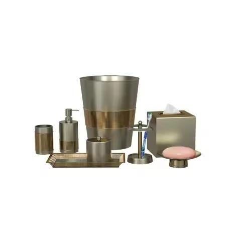 High End Stainless Steel Bathroom Set Tissue Holder Soap Dispenser Toothbrush Cup Waste Bin