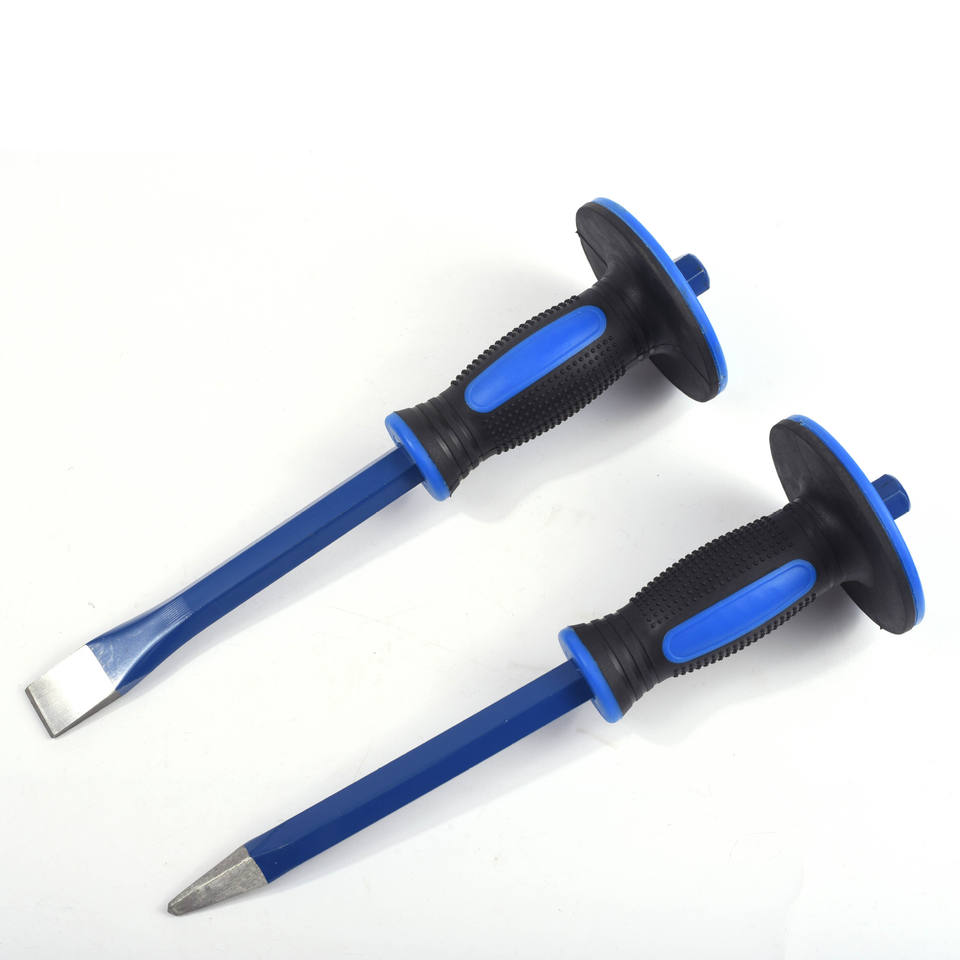 High-End Two-Tone Rubber-Handled Flat Pointed Steel Chisels Stonemason's Cement Flat Chisels Hardware Tools & Stone Chisels