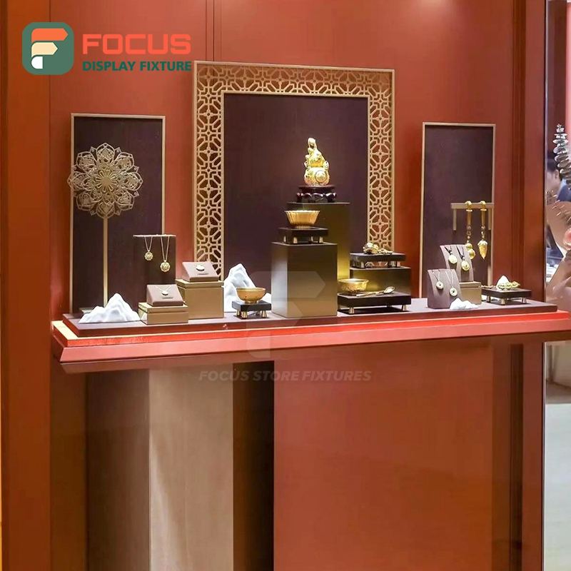 High End Wall Mounted Glass Display Cabinet Wooden Jewelry Counter LED Light Luxury Modern Wall Jewelry Showcase