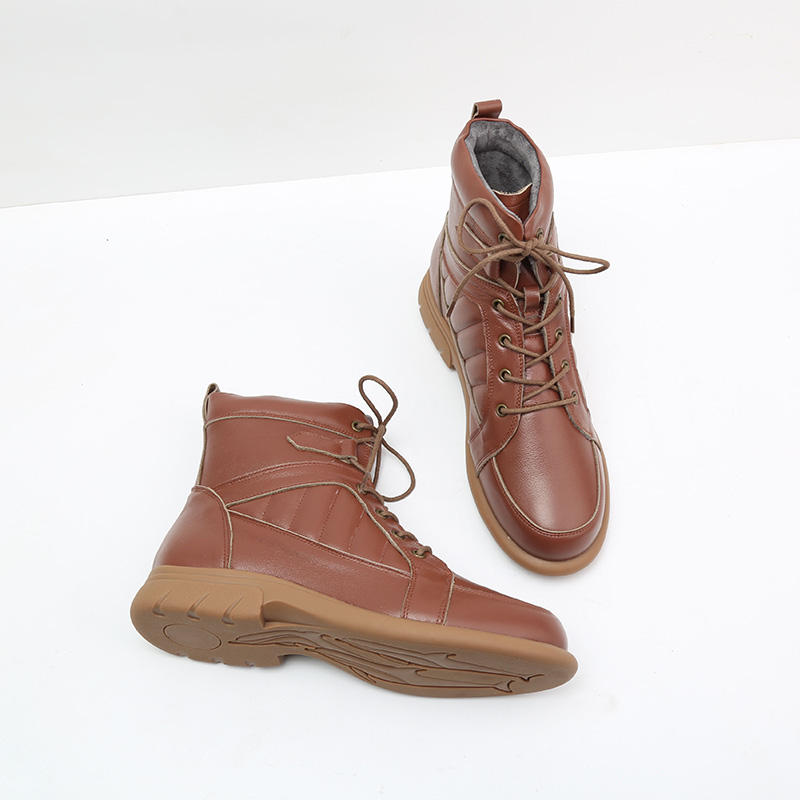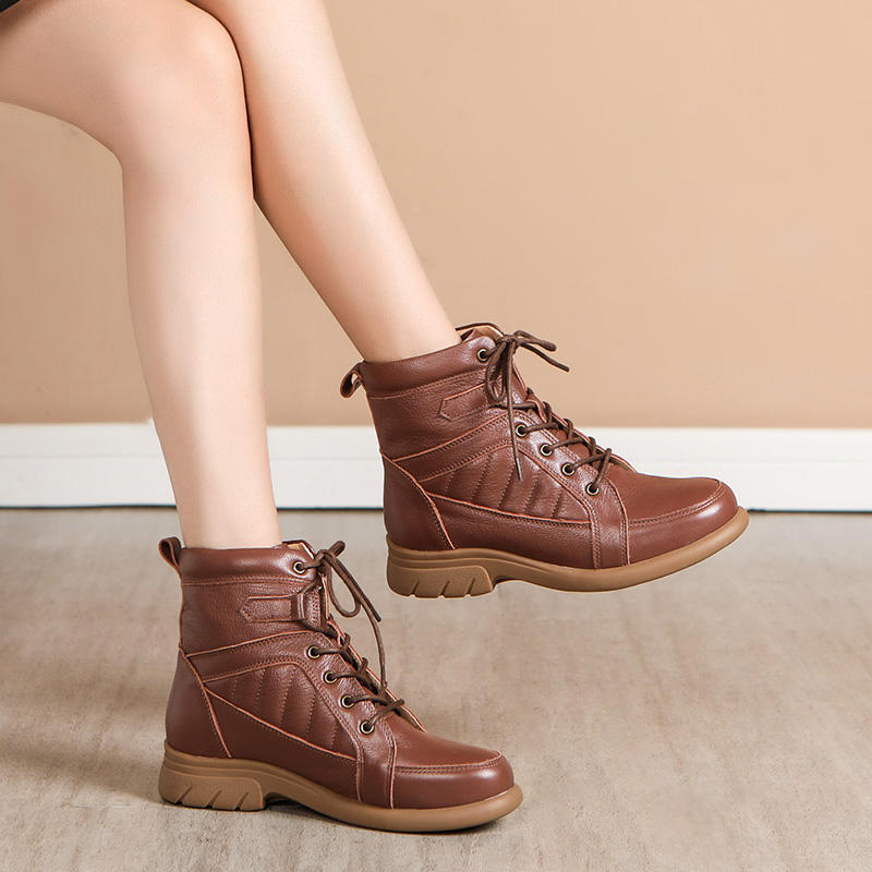 High-End Women's Autumn Winter Casual Boots Comfortable Mid-Tube with Soft Soles Solid Fur Lace-Up Cow Leather Upper for Spring