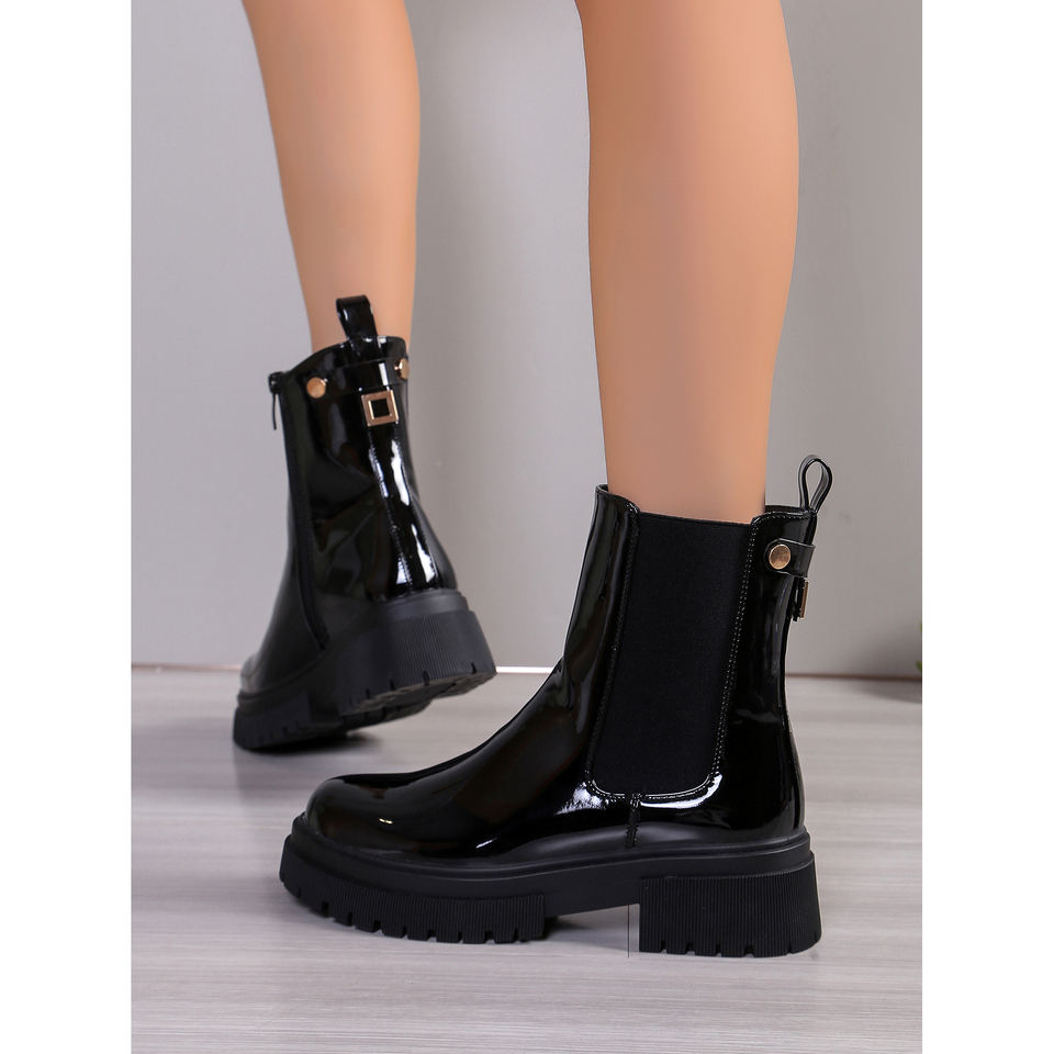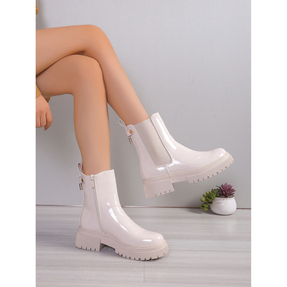 Women's High-End Leather Ankle Boots Versatile Classic Style Zip PU Increasing Flat for Office Casual Summer Autumn Winter
