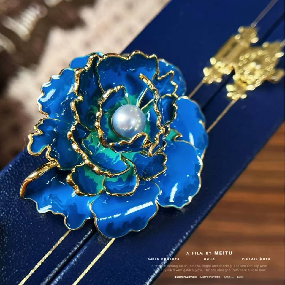 High-End Women's National Style Peony Flower Brooch Pins Exquisite Pearl Cheongsam Hanfu Chest Flower Coat Brooch