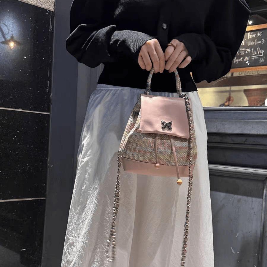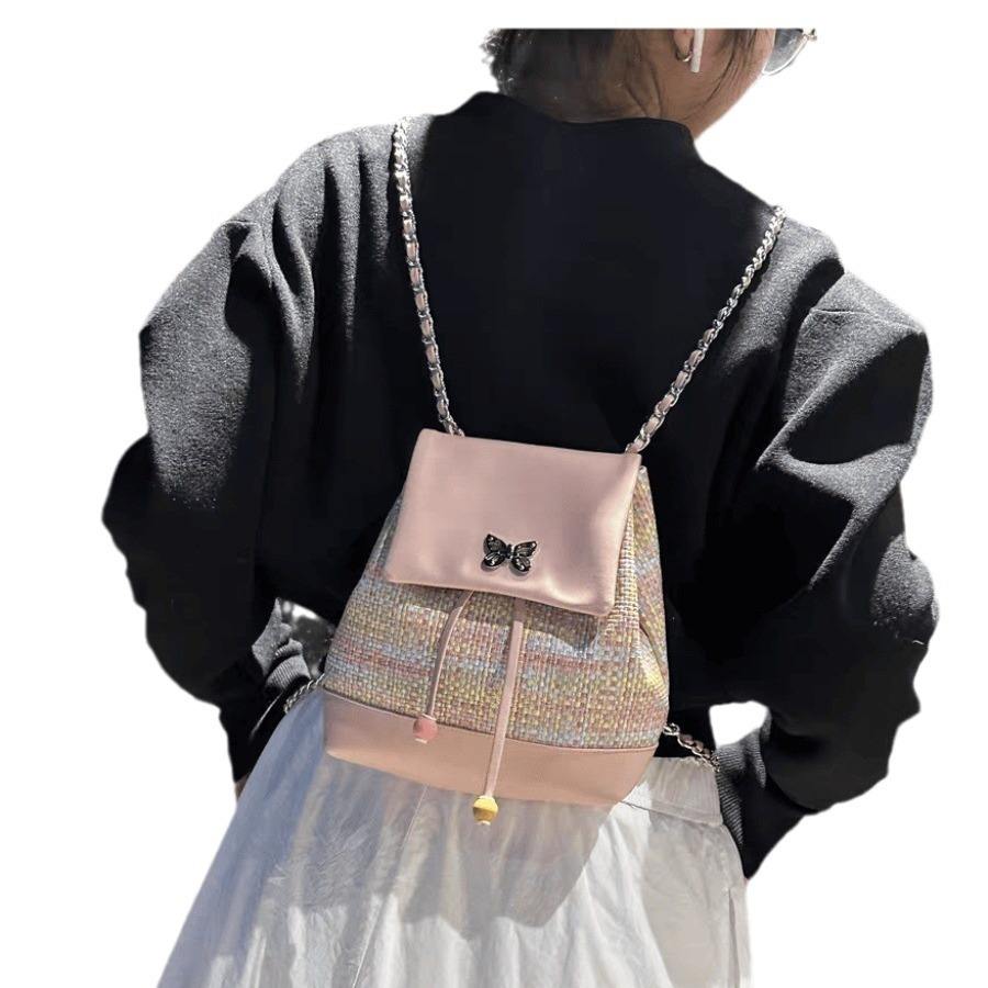 High-End Woven Chain Backpack Women Fashion Zippered Closure PU Material Polyester Lining Waterproof Soft Versatile 20L 13-inch