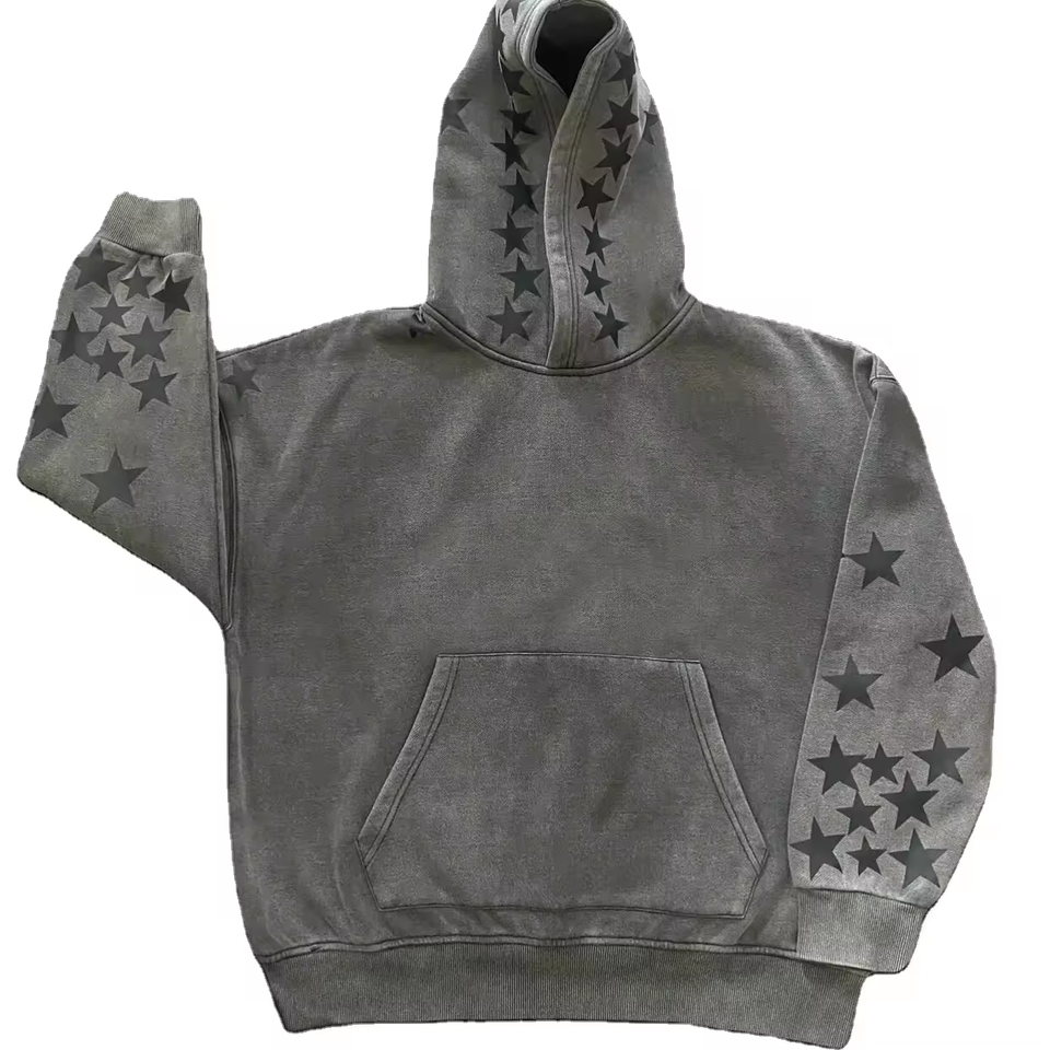 High Fashion Black Oversized Hoodie Designer Stars Pattern 100% Cotton 500G Heavyweight acid wash hoodies