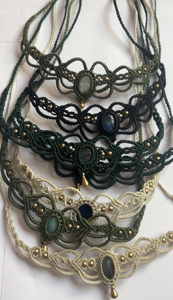 High Fashion Jewelry Mix Shape With Beads Mix Gemstones Macrame Choker Necklace Multi Color Thread Boho Style Necklace