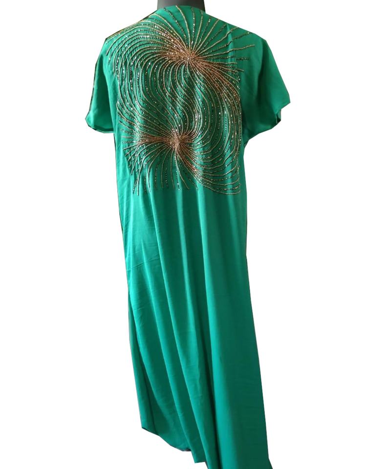 High Fashion Plus Size Hand Embroidered Sequined Beading Dropped Waist Floor-Length Abaya Straight Evening Dress