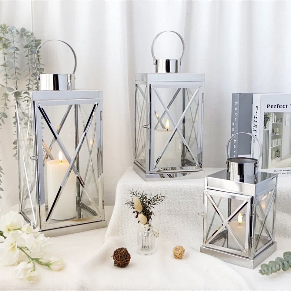 High Gloss Chrome Stainless Steel Metal Candle Holder Lanterns Different Sizes for Home Use & Garden Trending for Christmas