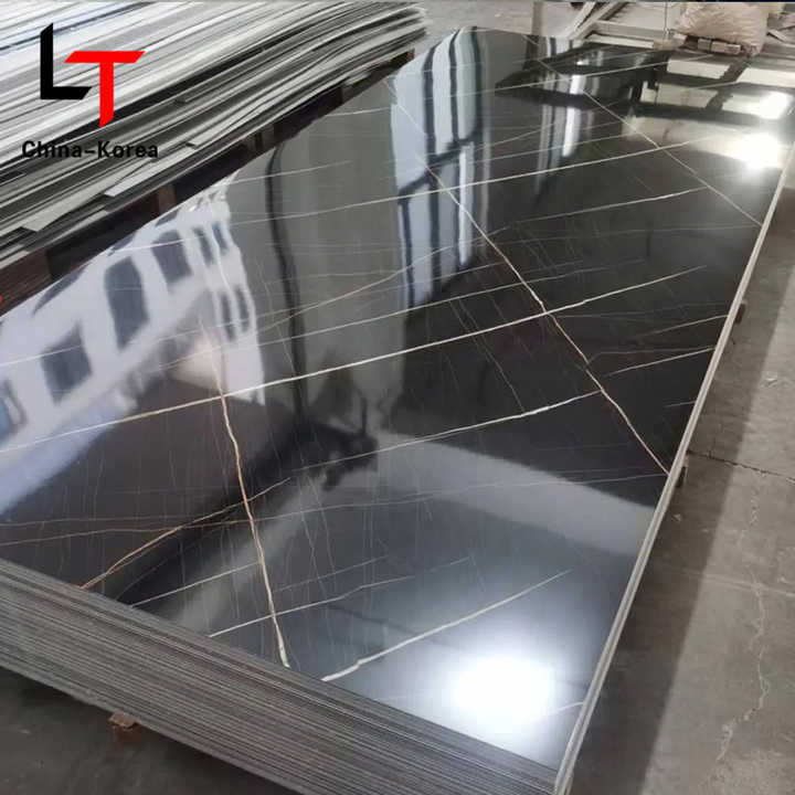 High Glossy UV Coating Black Marble Alternative Wall Panel Board / SPC Stone Plastic Composite PVC Marble Sheet