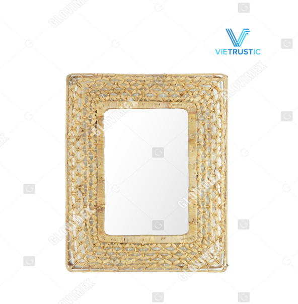 High Good Quality Water Hyacinth Small Round Mirror Bathroom Mirror Decor Natural Safe Wicker Makeup Vanity Mirror