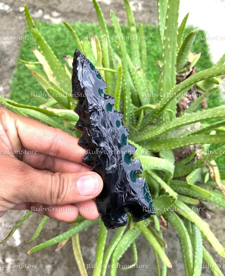 Finish:Hand-carved arrowhead blade with detailed knapped edges