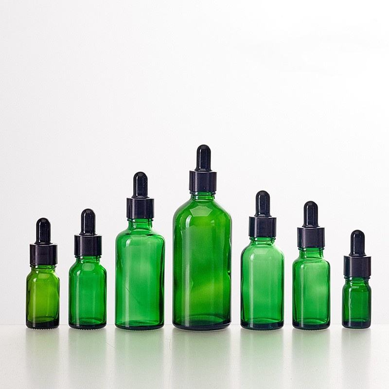 High Grade 5ml to 100ml Glass Dropper Bottles Cosmetic Oil Storage Round Shape Luxurious Green Color Glass Bottles