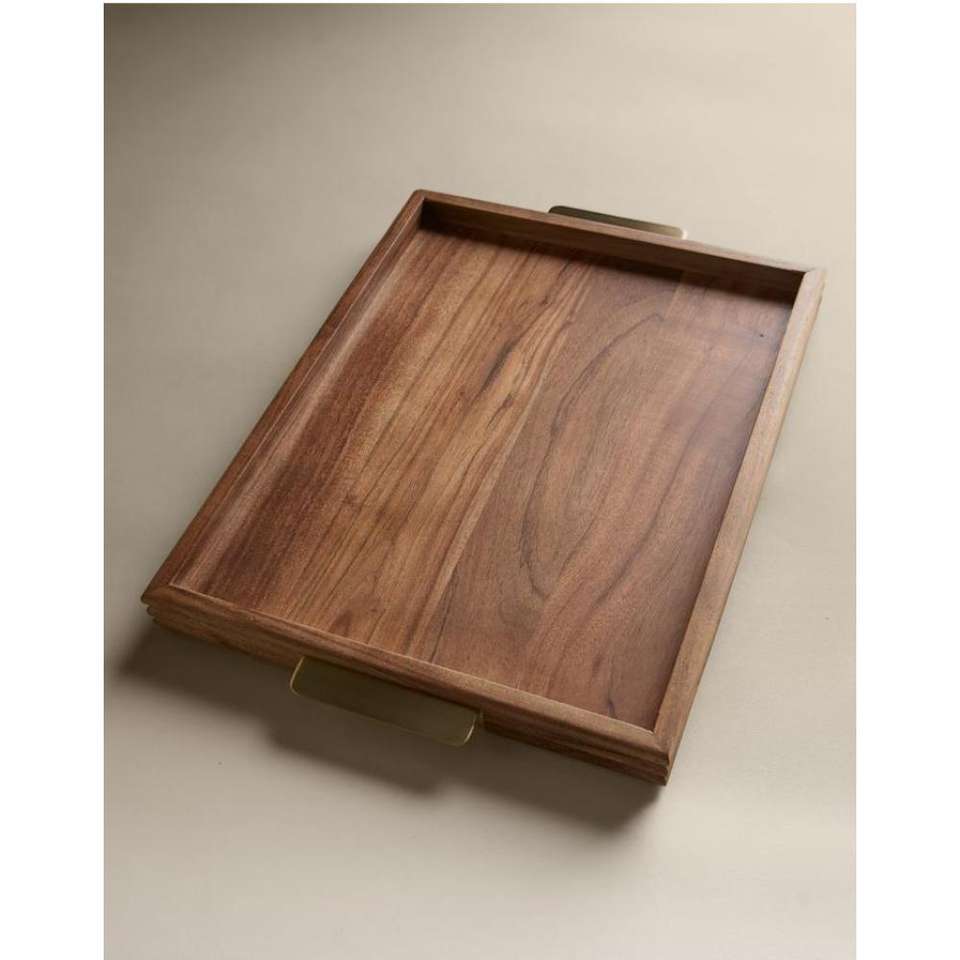 High Grade Acacia Tray Rectangular Shape Large Capacity Wooden Serving Trays Handmade Food Serve Unique Tray For Restaurants