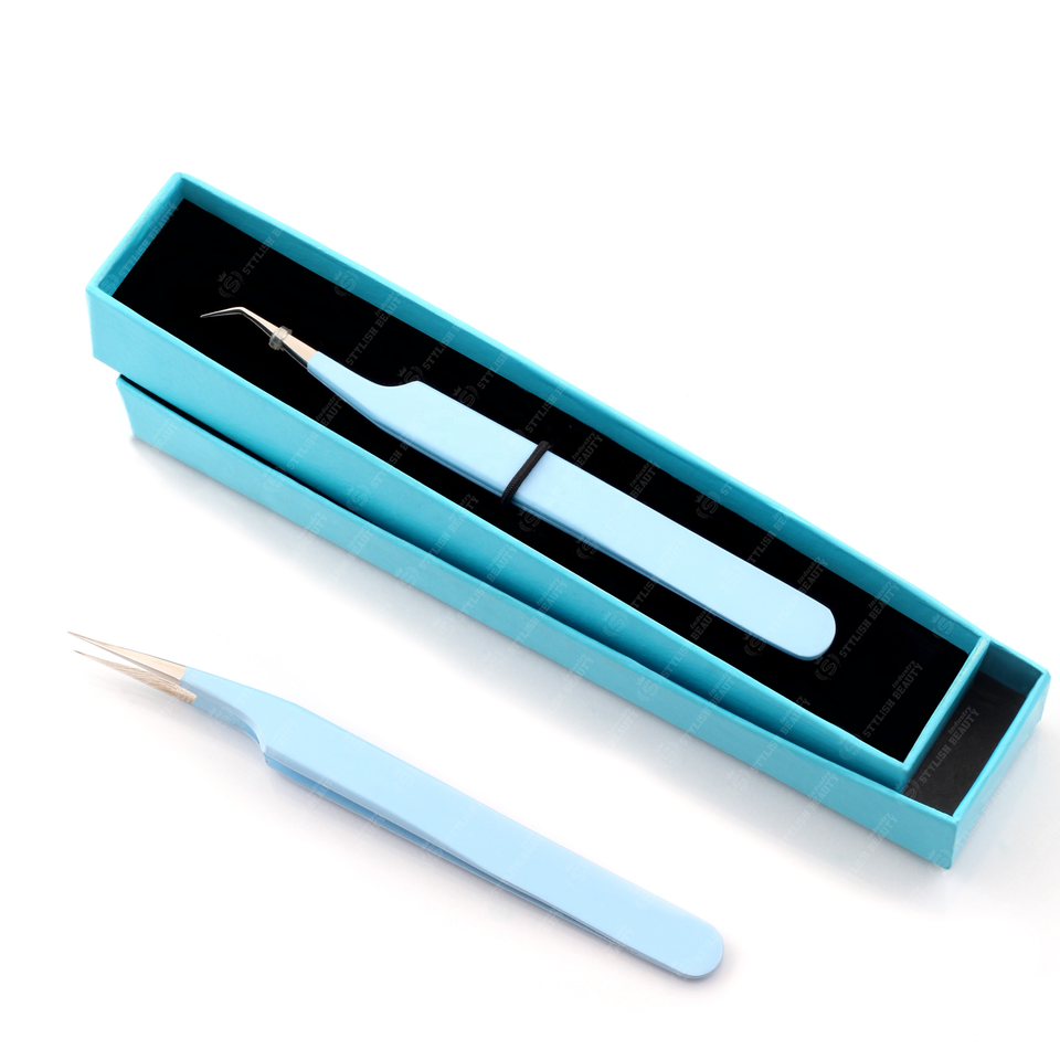 High-Grade Anti-Static Russian Volume Lash Tweezers Stainless Steel Beauty Eyelash Extension Tweezers Fiber Customizable Brand