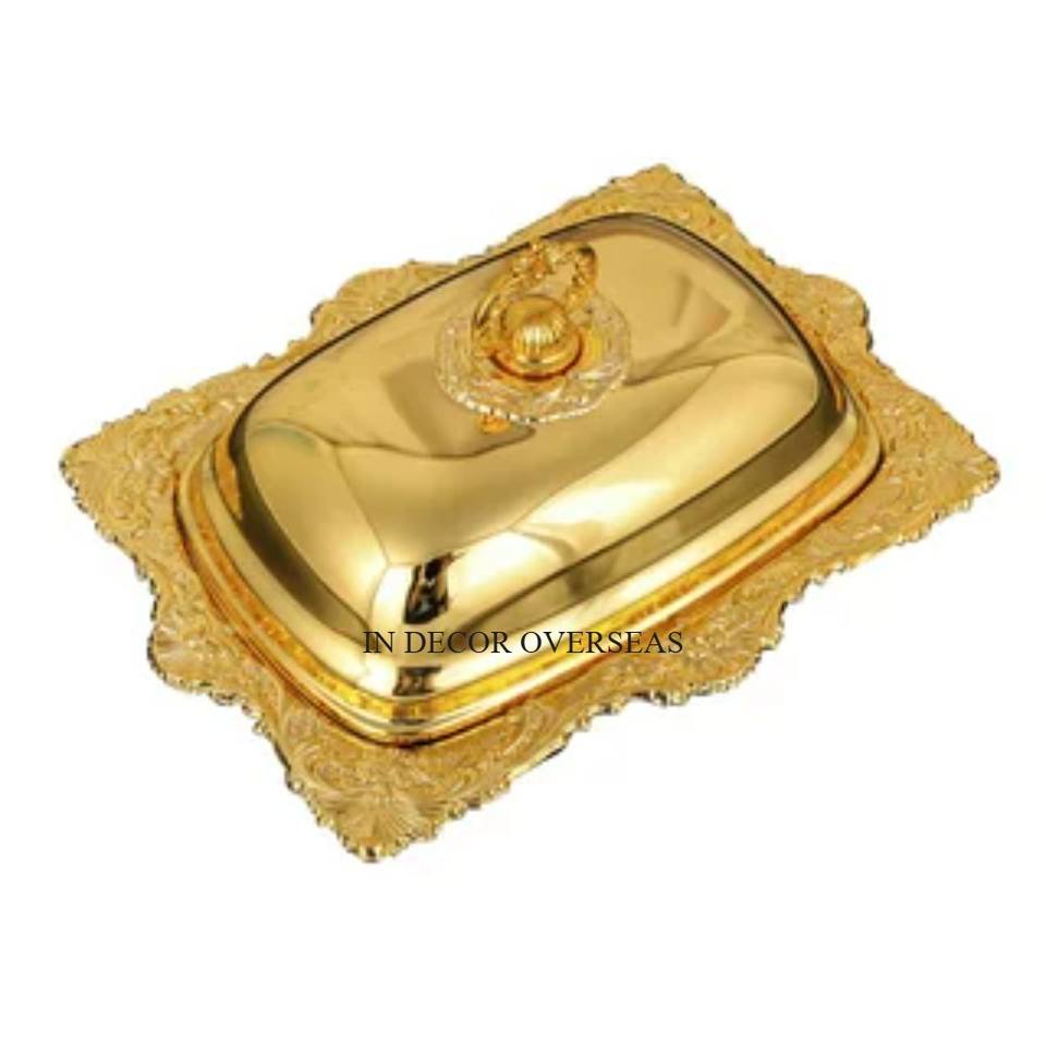 High Grade Gold Butter Dish with Lid,Multi-Purpose Serving Food Dish Tray Kitchen Gadgets Table Centerpiece Kitchenware Dinner