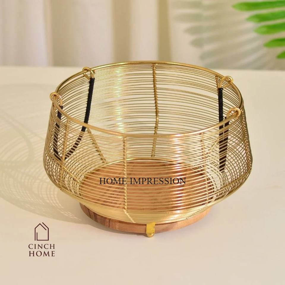 High Grade Gold Plated Heavy Duty Metal High Standard Quality Table Centerpiece and Decoration Fruits and Bread Serving Basket