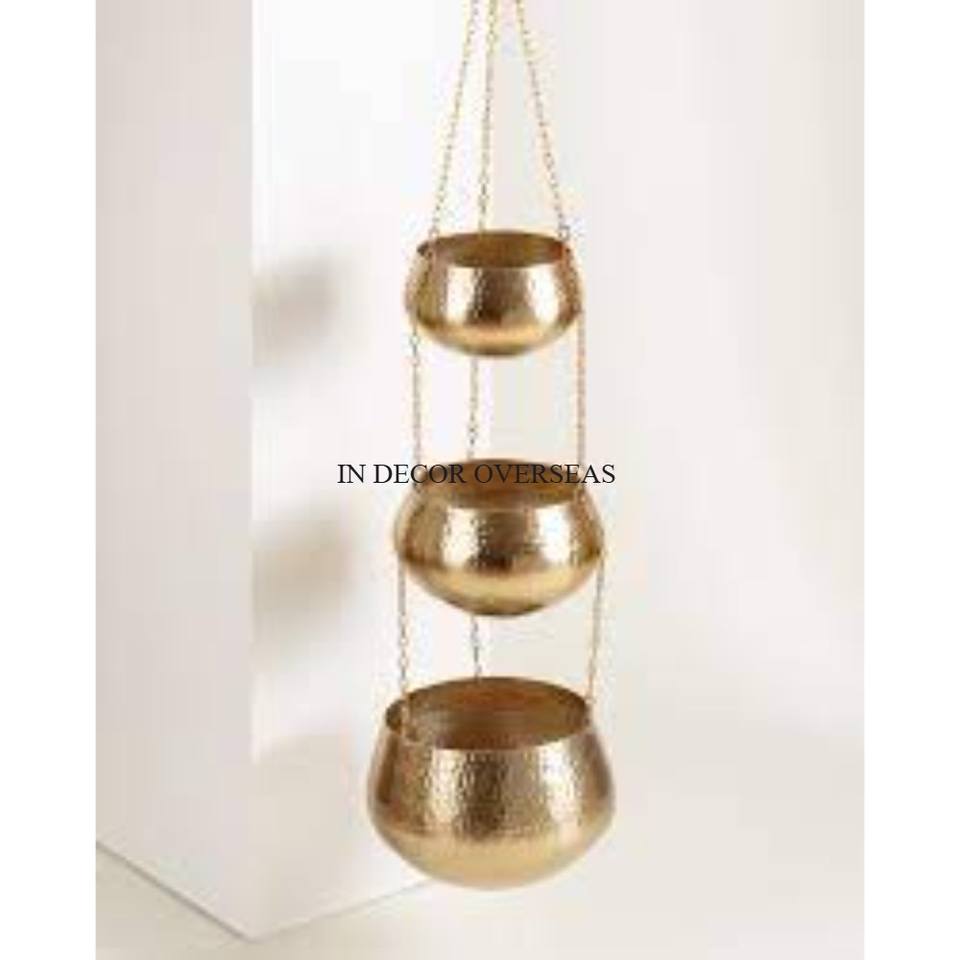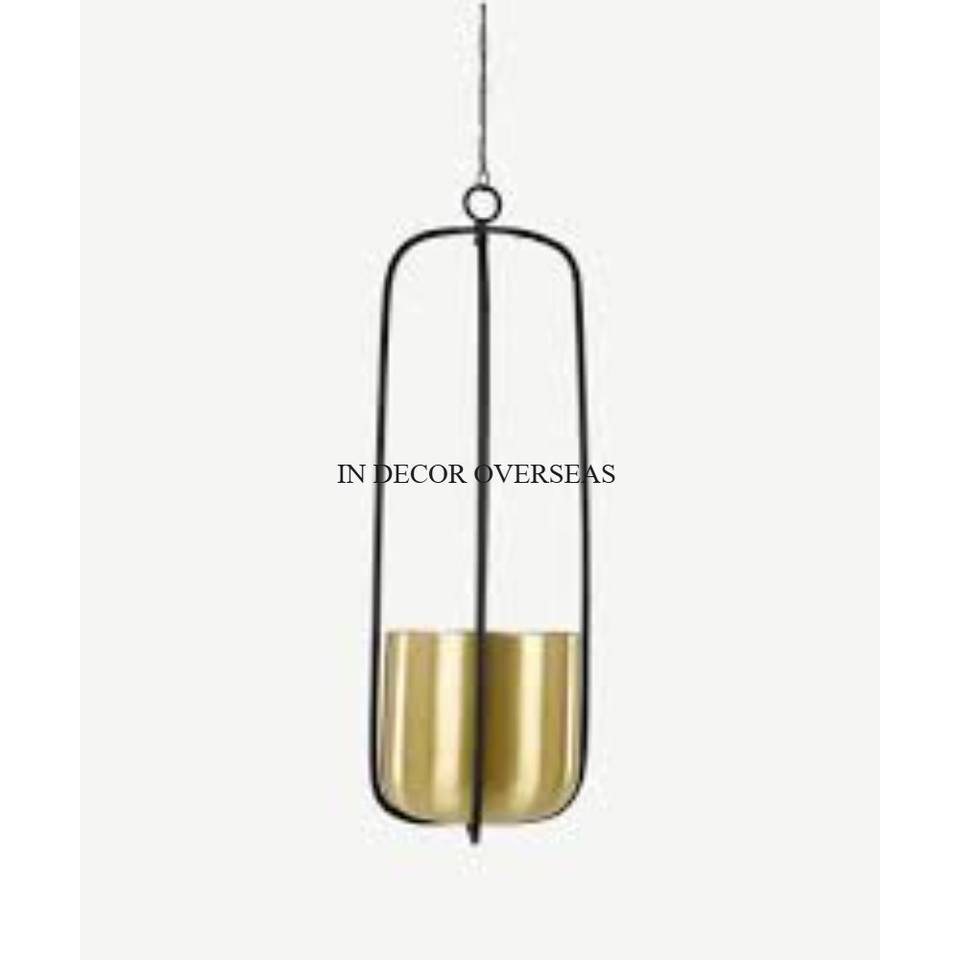 High Grade Gold Plated Superior Quality Metal Made Hanging Planter With Black Color Powder Coated Hanging Stand Home Decor